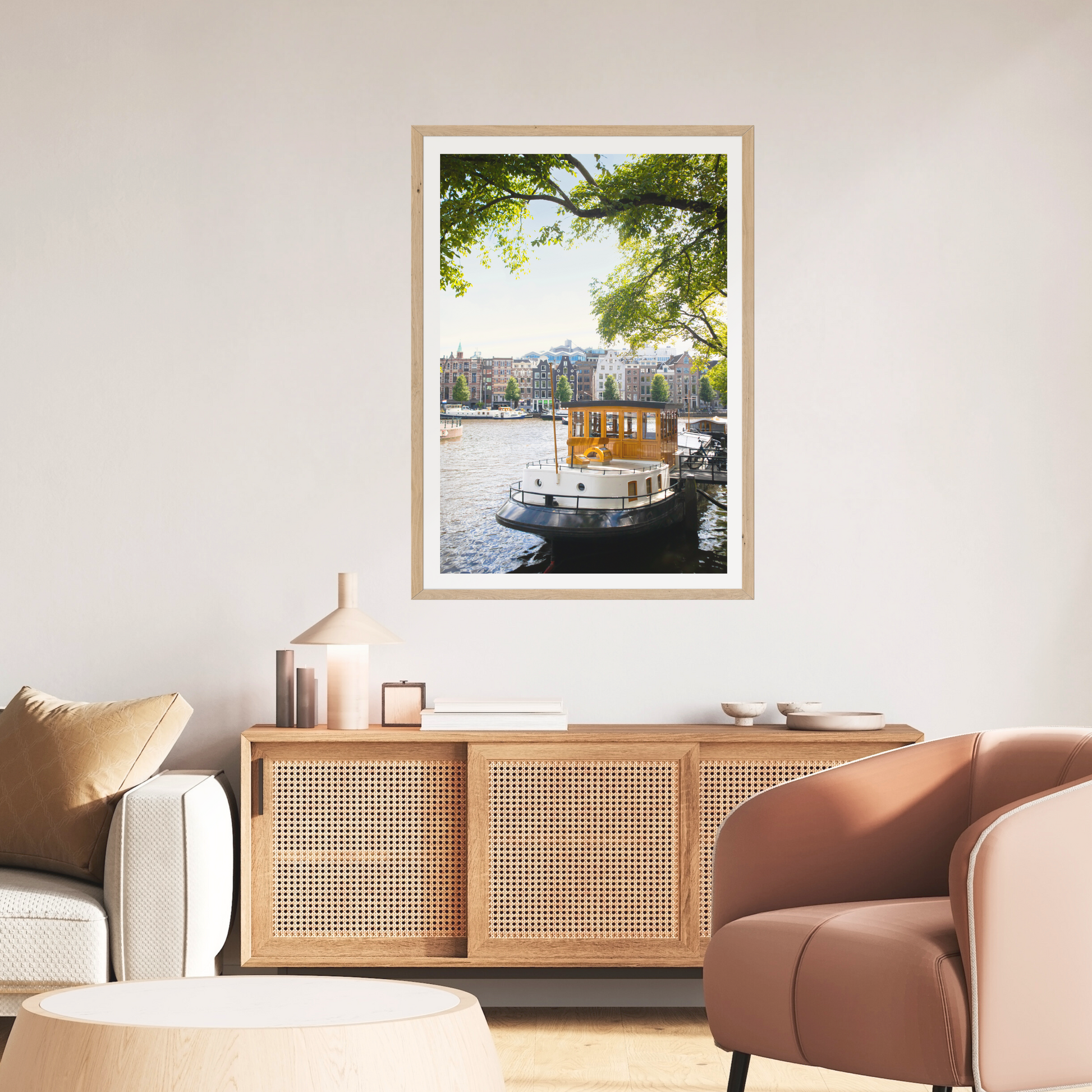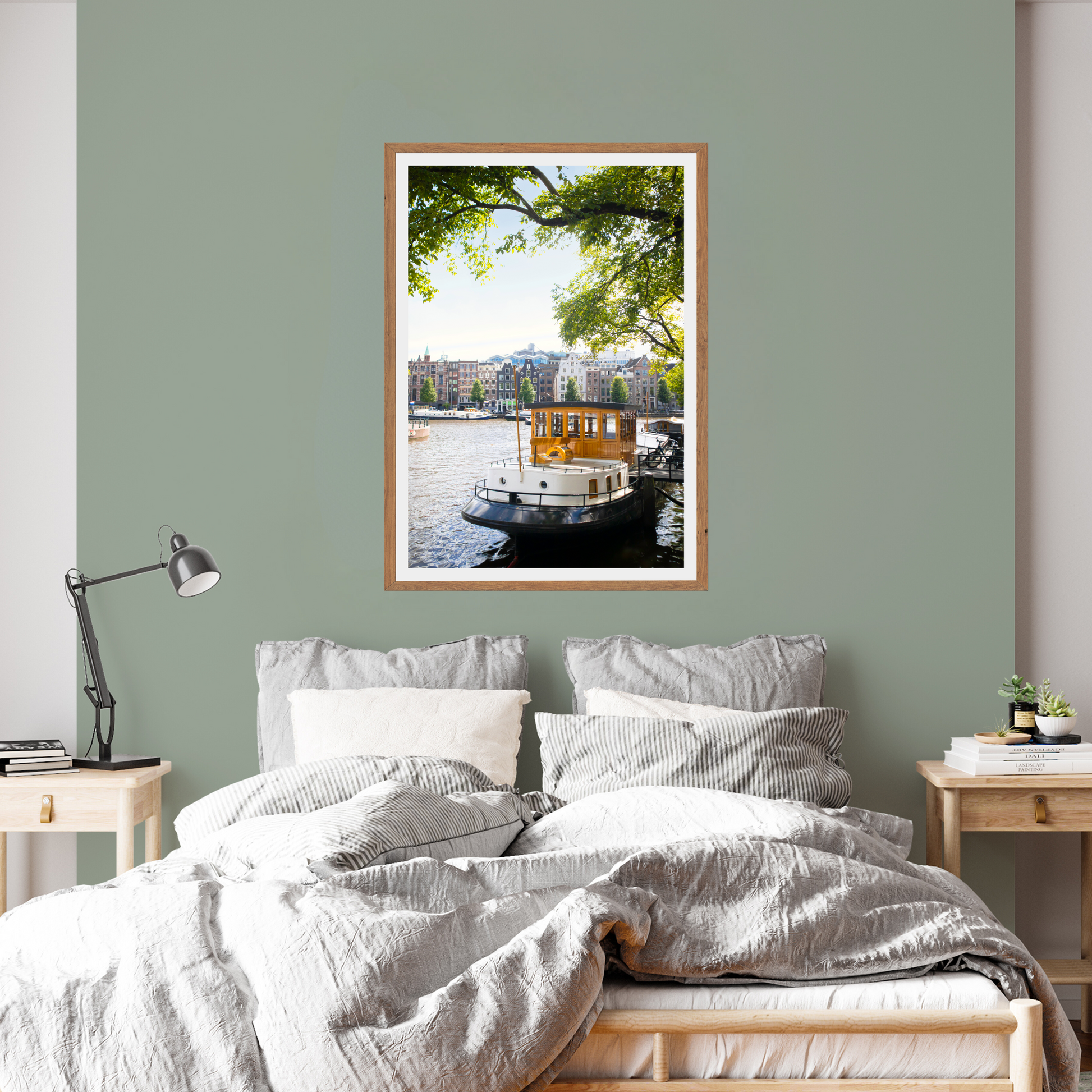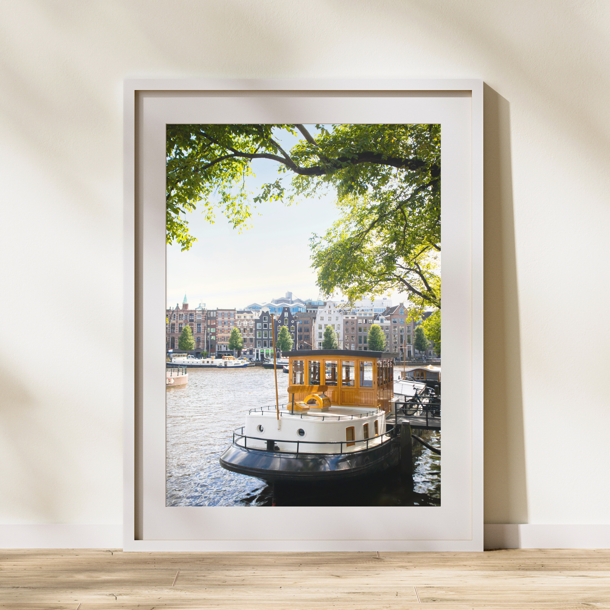 Calm boat chilling on the Canal - photographed in peak Amsterdam summer